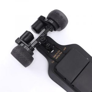 Choose between 6 inch rubber wheels or 120 mm cloud wheels. Both are great at absorbing road vibrations but of course the 6 inch rubber wheels negates road vibrations much more significantly. Use cloud wheels if you want maximum range and torque.